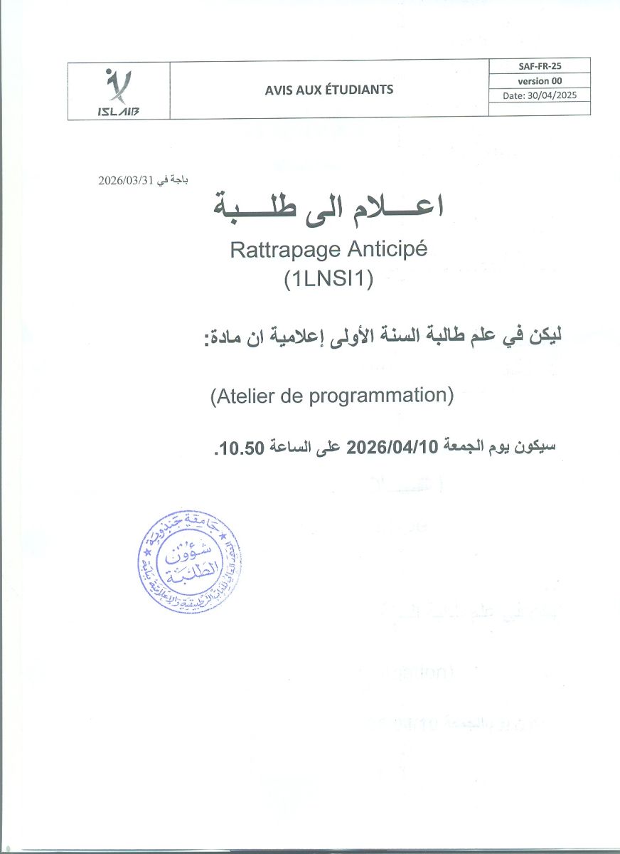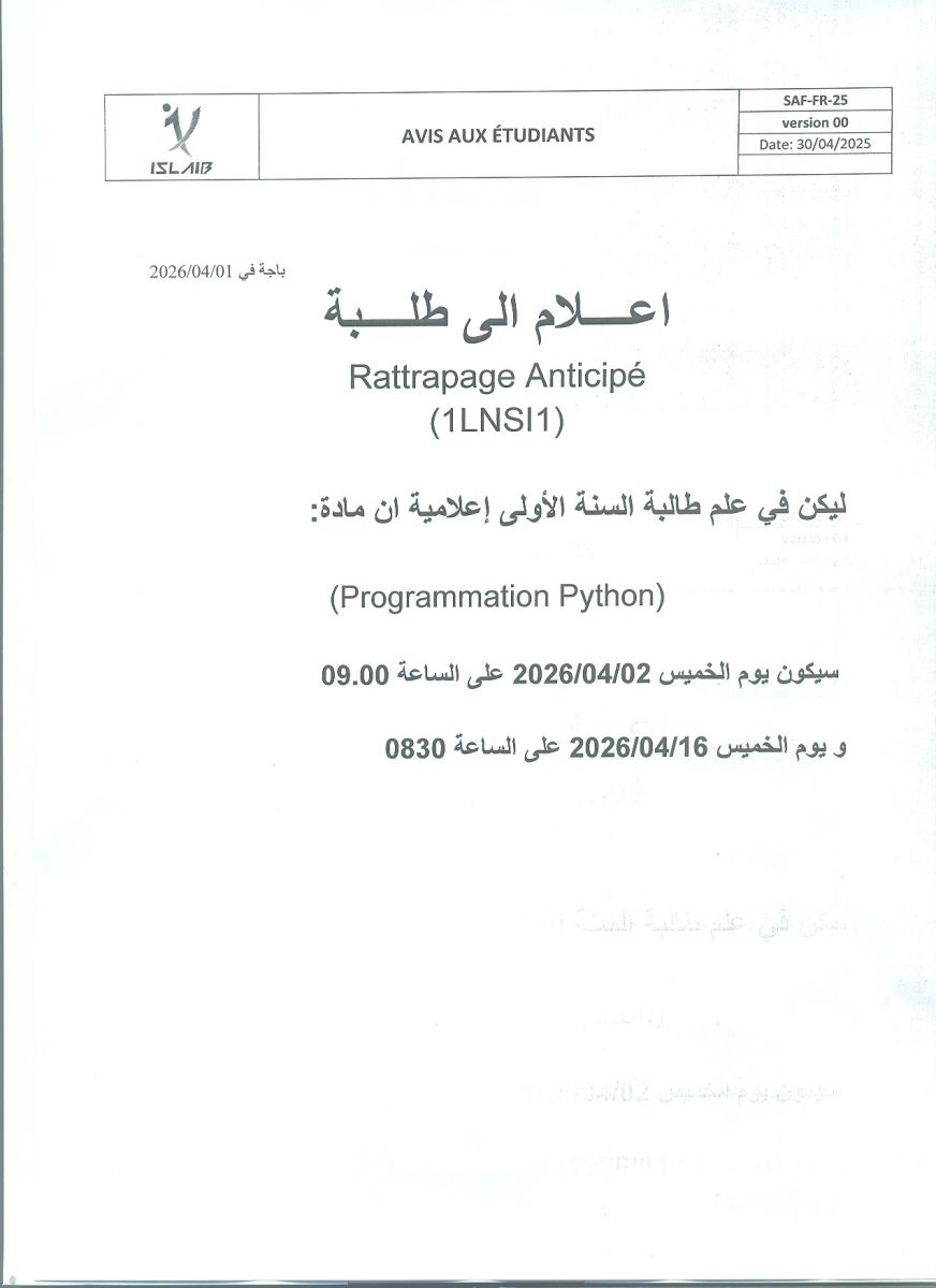 Date de dernière mise à jour: mercredi 15 avril 2026