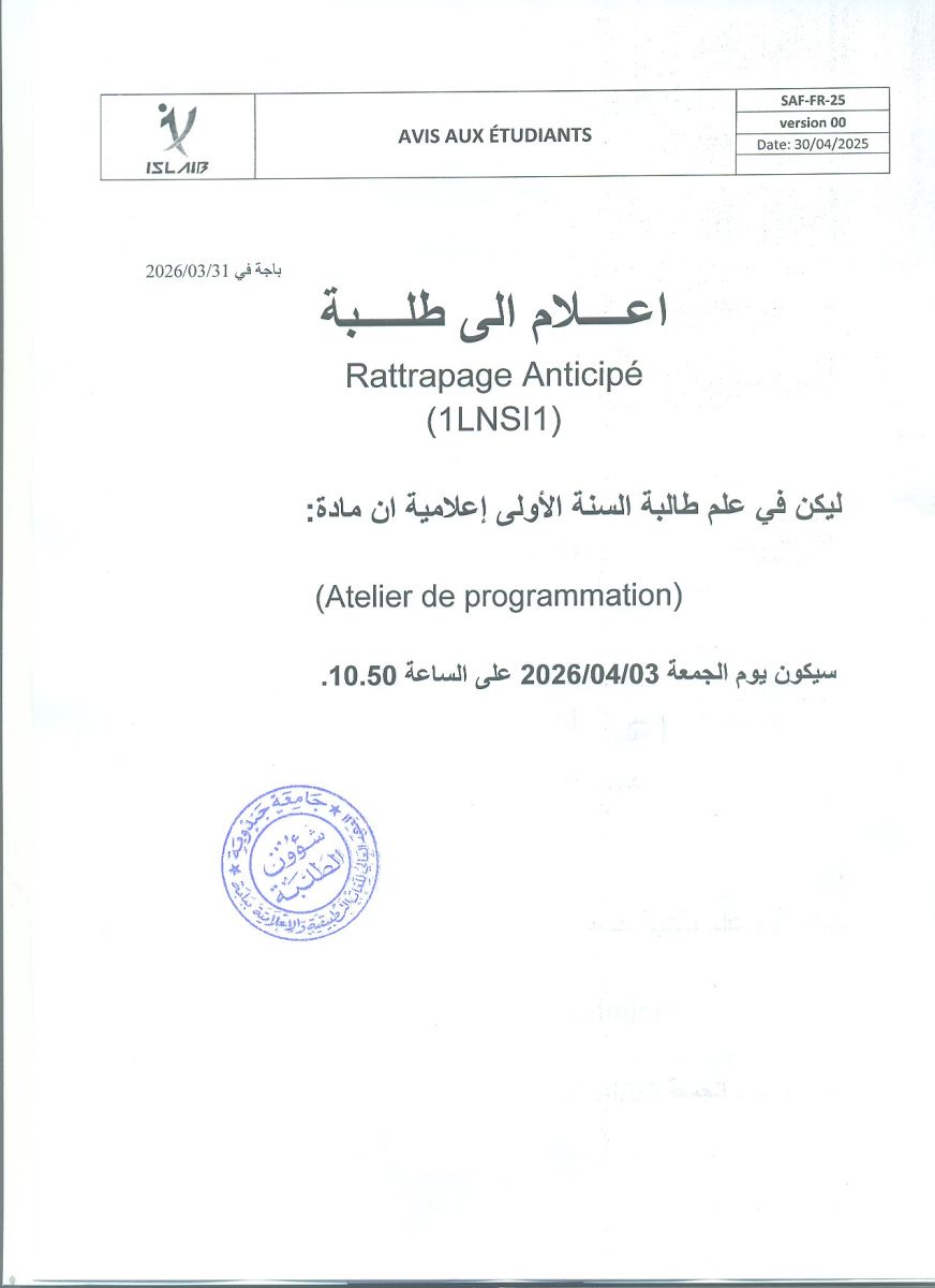 Ministère de l’Enseignement Supérieur et de la Recherche Scientifique